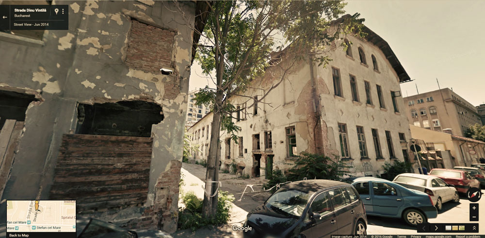 | Print screen pe Google Maps, cu clădirile rămase din Moara Dâmbovița (poze din 2014) |